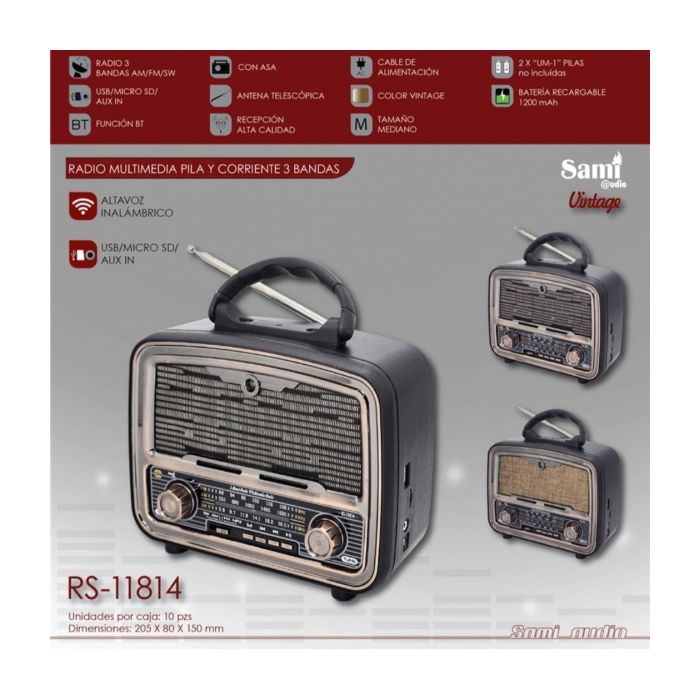 📻 Radio FM/AM con dial manual clásico.